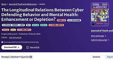 崔丽娟课题组在 J Youth Adolesc...